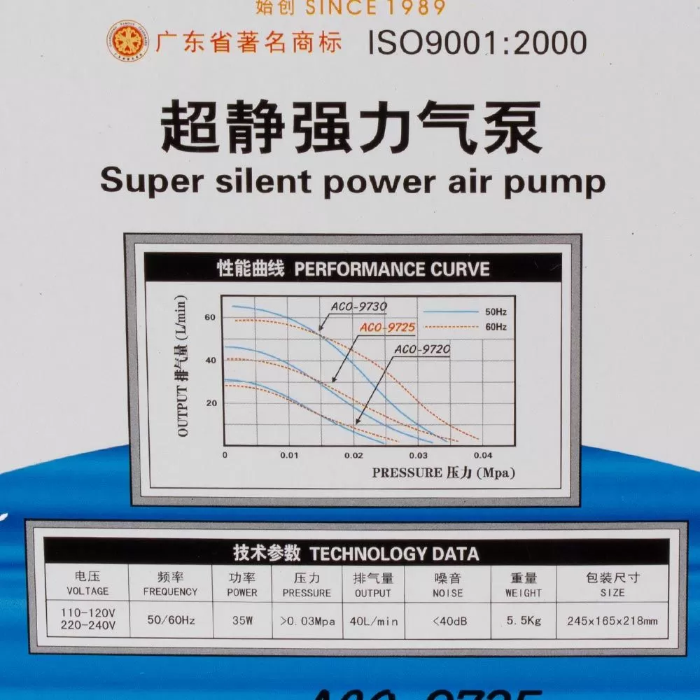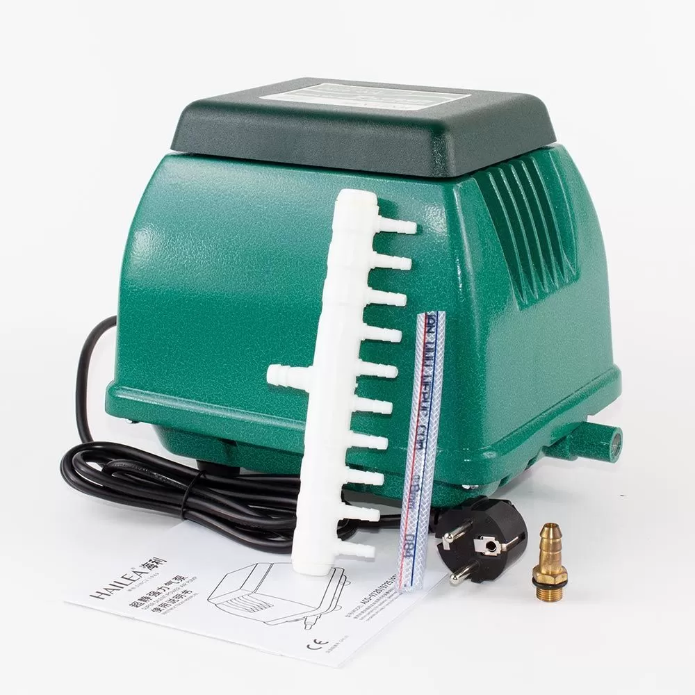 - Компрессор подходит для пруда объемом 1800 - 3600 литров или от 2.4 - 4.8 м³.